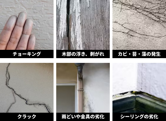以下の6つのサインが1つでも当てはまる場合、塗り替えを検討すべき危険信号です。