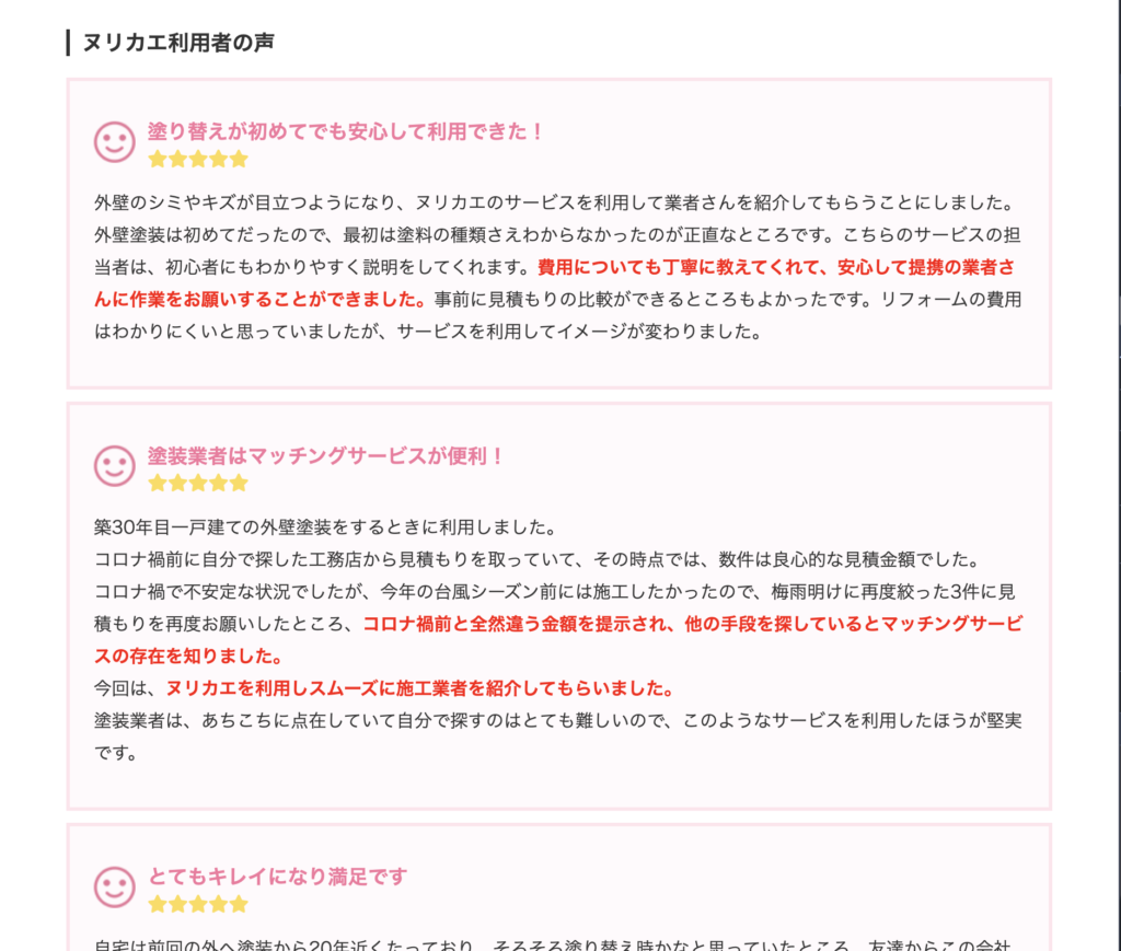 ヌリカエはあなたの住む地域の優良業者だけを厳選して複数紹介してくれます。