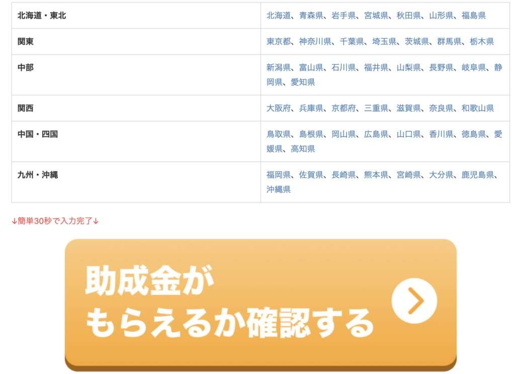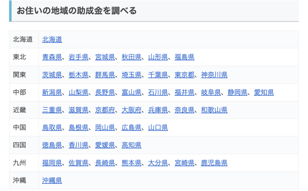 ↓地域名をクリックすると助成金の調査に必要な情報を入力できます。↓